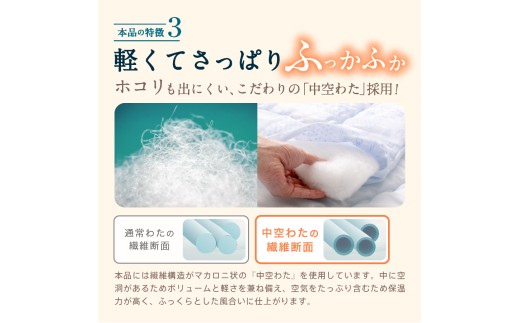 適度な厚みと保温性がありつつも、重さや圧迫感が少なく、寝返りを妨げません。