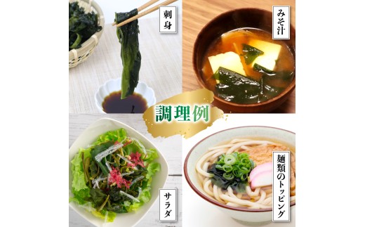 わかめの各部分の食感や風味を食べ比べてください。一束ずつ袋に入っておりますので、ご家族、ご友人でシェアすることも可能です。熨斗をおつけすることもできます。