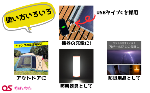 緊急災害時やアウトドアでの非常用電源として活用可能です。