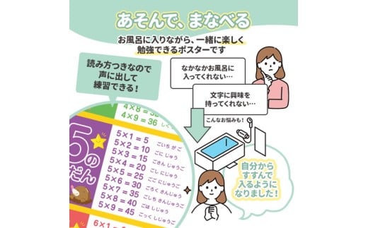 お風呂でかけ算を覚えよう!お風呂に貼って九九を学習できるマグネット製ポスターです。