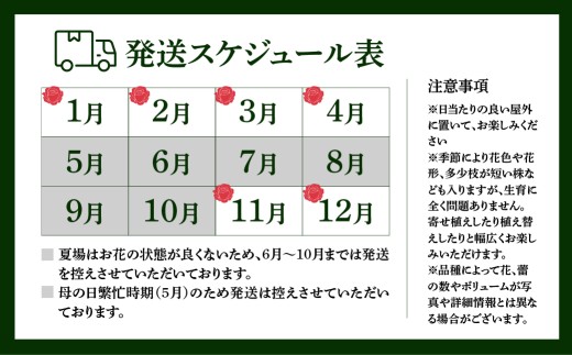 ※繁忙期や、夏場はお花の状態を考慮し、5月~10月中頃のお届けは控えております。