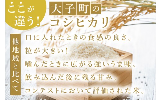 大子町のコシヒカリは他地域と比べて、粒が大きいので口に入れたときの食感の良さと噛んだときに広がる強いうま味と飲み込んだ後に残る甘みがコンテストにおいては評価されています。粒が大きく粘りも強いので、冷めても美味しく召し上がれるのも大子町のコシヒカリの特徴です。