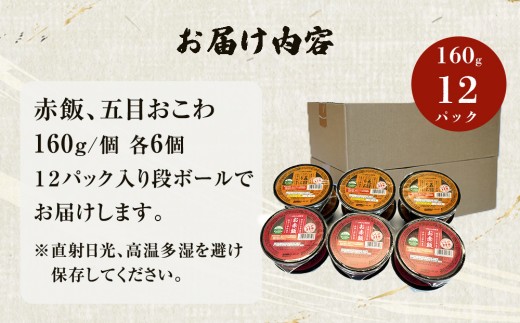 原料には、宮城県を代表する品種でありながら、栽培が難しく作付けが減少傾向にある「ササニシキ」ともち米「みやこがね」を使用した、こだわりの製品です。お祝いごとにも便利なお赤飯、もちもち食感がたまらない五目おこわの炊飯パック2種類がセットになった製品です。いずれも電子レンジで加熱するだけで炊き立てのおいしさを味わえます。各1パック160gで、約お茶碗一杯分です。