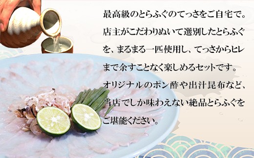 丸々1匹余すことなく楽しめる『活とらふぐ 宅配セット』2~3名様分です。