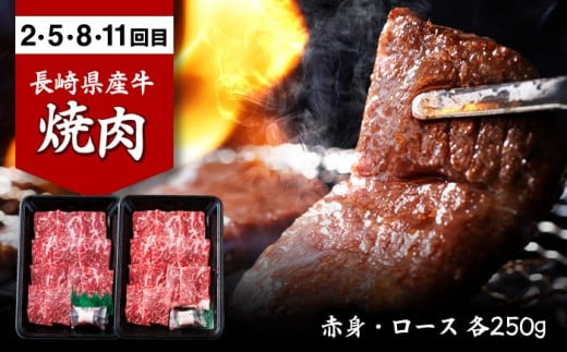 長崎県産牛の赤身と霜降のすき焼き用、焼肉用、ステーキを定期便でお届けします。
