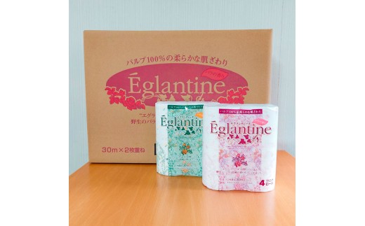- トイレットペーパー ダブル 天然パルプ100% エグランティーヌ 30ロール入り 30m 野薔薇の香り 香り付き 野バラ プリント入り 柄入り ピンク イエロー 日用品 消耗品