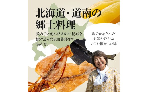 松前漬は北海道の郷土料理で、数の子、スルメと昆布で漬け込んだ保存食です。