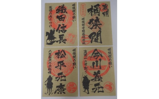 (4)古戦場印 4枚1セット(裏面に桶狭間の戦い解説付き。)