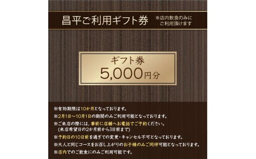 肉割烹「昌平」ご利用ギフト券(5,000円分)【m96-02】【昌平】