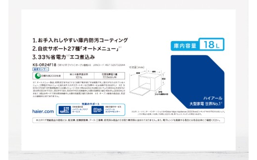 - オーブンレンジ18L KS-OR24F18-WH【家電 Haier オートメニュー 自炊 キッチン 食卓 電子レンジ 温める 新生活】(NE-21)