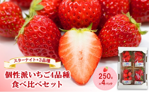 「スターナイト」+3品種 個性派いちご4品種食べ比べセット 250g×4パック 『とくしま安2(安全・安心)農産物』優秀認定取得