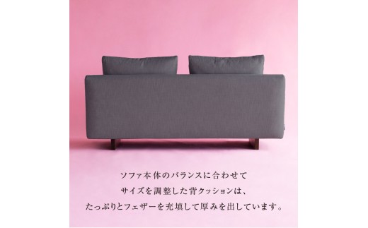 背クッションは、フェザーを充填して厚みを出しており、座クッションには高密度の低反発ウレタンを使用しております。