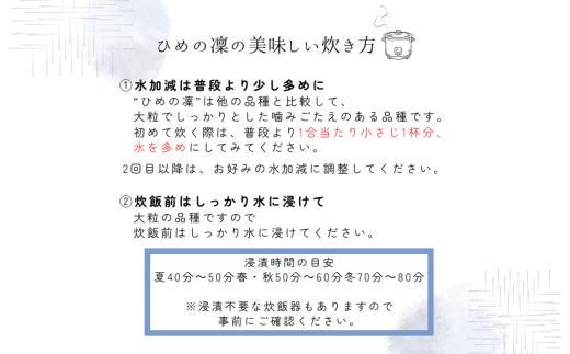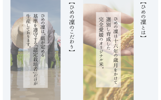 ひめの凜は十六年の歳月をかけて選別し育成した完全愛媛のオリジナル米。