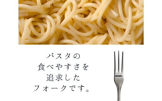 【パスタフォーク】フォークは基本4本刃ですが、この商品は3本刃です。中央の1本だけが長く、コマのようにくるくると巻くことができます。また、両端が外側を向いているため、巻いてから口元に運ぶまでに落ちづらい設計になっています。刃の幅が変わるフォークは、どんなパスタの太さにもフィットし綺麗に巻き取ることができます。もちろんパスタだけではなく、サラダやデザートにもおすすめです。