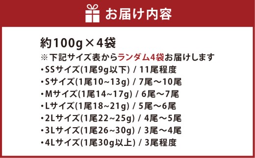 うるみえび (冷凍) SS~4Lサイズ ランダム 約400g 100g×4袋 エビ 海老 えび 海鮮 サイズ 4袋 鮮度 贈り物 ギフト ブランドエビ 岡山県 倉敷市