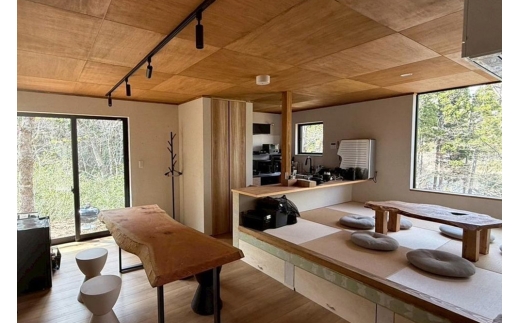 ●宮城県利府町のキャンプ場内、ダム湖畔にある本格フィンランドサウナ付きコテージ