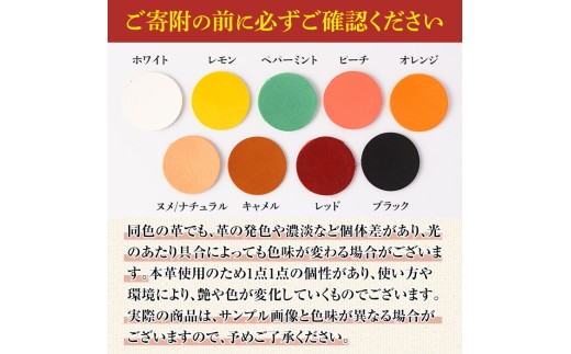 天然素材、本革(牛革)を使用している為、革が本来持っていたシワやホクロ、傷の自然治癒の跡、血管跡、染色の浅深等がある部位を目立たない部位に使用する場合がありますが、本物の証、個性として楽しんで頂けます様、予めお願いいたします。