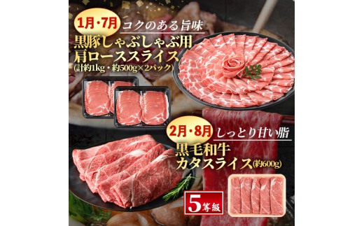 i1008 <定期便・計12回(連続)>黒毛和牛黒豚定期便(総計約10.7kg以上) 国産 九州産 鹿児島産 黒毛和牛 牛肉 国産牛 黒豚 豚肉 サーロイン ステーキ 切り落とし 切落し しゃぶしゃぶ すき焼き 定期便 12回 冷凍配送 【スターゼン】