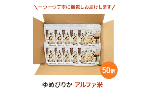- 北海道赤平市産ゆめぴりか使用! 五目御飯 100g 50袋セット 大粒で甘みしっかり アルファ米 保存食 非常食 長期保存 アルファ化米