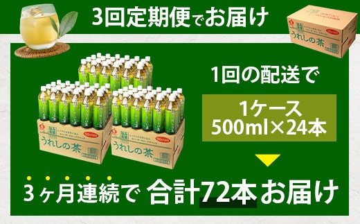工場直送!うれしの茶 500ml×24本入 《3回 定期便》箱買い セット お茶 飲料 緑茶 飲み切りサイズ うれしの 嬉野茶 ペットボトル 24本入り 500ml ストック ギフト 贈り物 贈答 お中元 お歳暮 季節の変わり目 旬 備蓄 備え 佐賀県 鹿島市 F-97