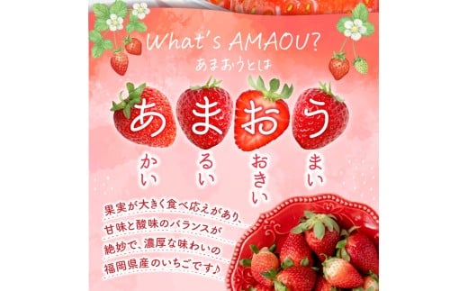 「あ」かくて、「ま」るくて、「お」おきくて、「う」まい、『あまおう』は、大粒で食べ応えがあり、甘味と酸味のバランスが絶妙で、濃厚な味わいのいちごです。