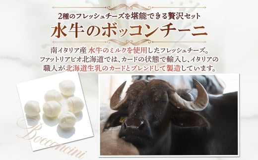 イタリアから輸入した水牛の乳を使い北海道で仕上げた貴重な「水牛ボッコンチーニ・ディ・ブッファラ」と、