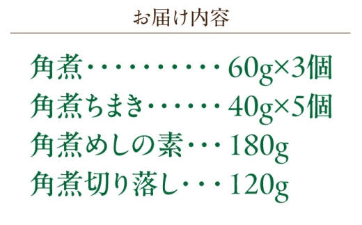 角煮60g×3個、角煮ちまき40g×5個、角煮めしの素180g、角煮切り落し120g |