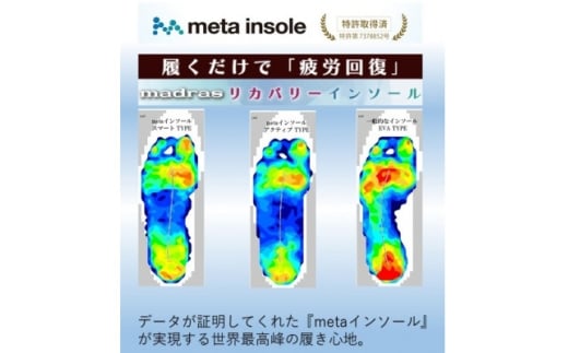 madrasリカバリーインソール「metaインソール(R)」は、硬めに設計された土踏まず部分が、歩行中の足裏を指圧のように刺激し、