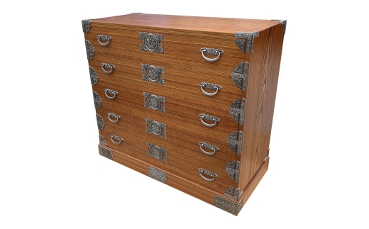 摺り漆四分一牡丹五段時代箪笥×1台 サイズ幅約103cm 高90.5cm 奥行き47.5cm 桐材 製造地:大阪府岸和田市 |