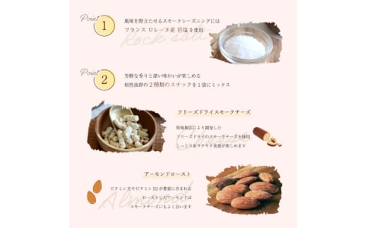黒トリュフミックスナッツ、白トリュフミックスナッツ、ビーフ&チェダーチーズ&アーモンド、スモークチーズ&アーモンド、キャラメリゼ&アーモンド、ハニーバター&アーモンド。