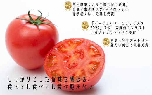 『オーガニック・エコフェスタ2022』では、栄養価コンテストにおいてグランプリを受賞し、春夏・冬の大玉トマト部門の両方で最優秀賞をいただくなど、高い評価をいただきました。