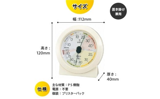 高精度UD温・湿度計 EX-2831 温度計 湿度計 本格派 感染症対策 健康管理 スーパーEXセンサ搭載 シンプル 大きな文字盤 見やすい アナログ式 電池不要 置き掛け兼用 計測器 みずさわ気象計器 エンペックス社 [AJ131]
