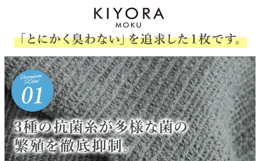 消臭能力に優れる備長炭の糸をシリーズで唯一プラスすることで、専門家も納得の最高の消臭力を備えたのが『KIYORA MOKU』です。
