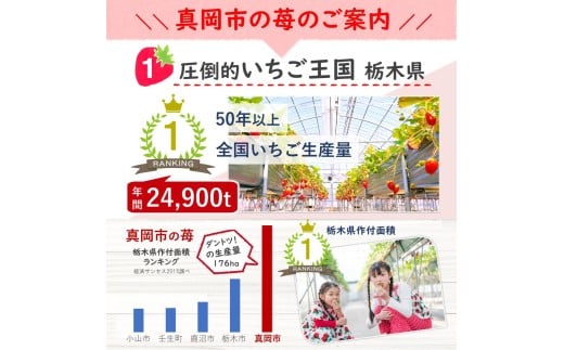 特に真岡市のいちご生産は、年間約7,000トンを超え、販売額については年間約81億となっており、日本一のいちごの産地として有名です。