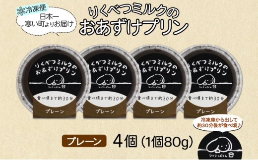 - 北海道 十勝 りくべつミルク おあずけプリン プレーン 80g 4個 プリン 冷凍プリン デザート おやつ ギフト 冷凍