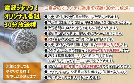 電波ジャック!オリジナル番組放送権(ラジオ30分放送) |