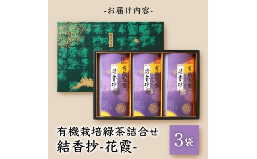 <のし付き・御歳暮>厳選有機栽培緑茶詰め合わせ結香抄-花霞-<80g×3袋><化粧箱入>A8-88S【1687042】