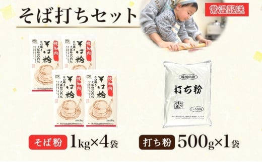 [№5795-0429]そば打ちセット そば粉4kg 打ち粉500g そば 蕎麦 ソバ 石臼挽き 本格 キタワセ 北海道産 家庭用 手打ちそば 粉 十割そば 入門 体験 麺類 そば作り セット 麺 つなぎ 国産 北海道 幌加内町