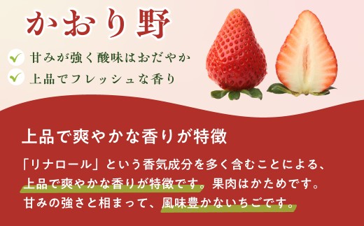 甘味が強く酸味もやや強めで、イチゴ本来の甘酸っぱさを堪能できる品種です。