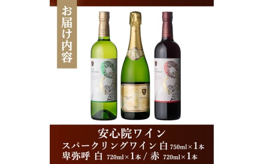 - 安心院ワイン スパークリングワイン白(750ml)/安心院ワイン卑弥呼 赤/白(720ml 各1本)(合計3本) 酒 お酒 ワイン 赤ワイン 白ワイン アルコール 飲料 ぶどう 葡萄 ギフト 贈り物【104305200】【山添産業】