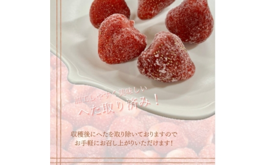 おおきベリーが栽培期間中、農薬を減らした栽培にこだわり、丹精込めて育てた完熟あまおういちごを鮮度そのままに急速冷凍。