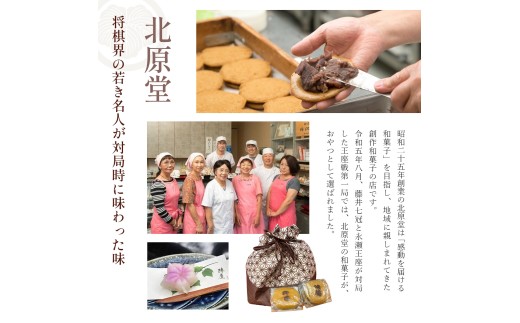 秦野市にある昭和25年創業の北原堂と陣屋がコラボした、秦野産落花生使用の「陣屋どら焼き」をお渡しします(巾着袋付き)。棋士もお土産にされています。