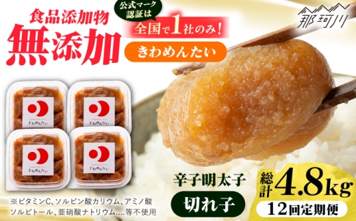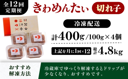 - 【全12回定期便】食品添加物無添加 辛子明太子「きわめんたい」中辛 家庭用切子400g(100g×4p)<株式会社 三楽>那珂川市 [GDT005]