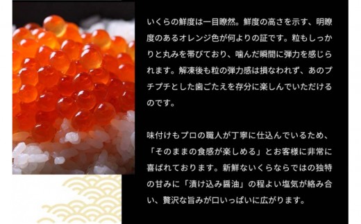 アメリカ産の新鮮な鮭卵を使用し、職人が丁寧に仕込んだ濃厚な旨味のいくら醤油漬けです。