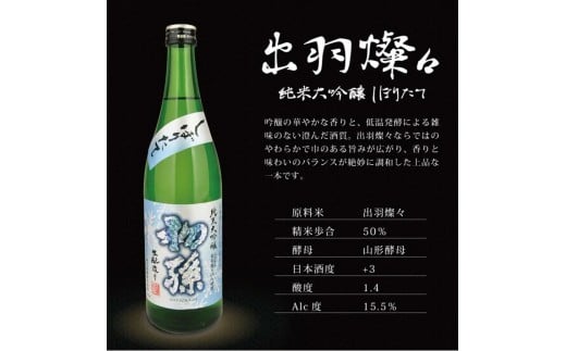 吟醸の華やかな香りと、低温発酵による雑味のない澄んだ酒質。出羽燦々ならではのやわらかで巾のある旨みが広がり、香りと味わいのバランスが絶妙に調和した上品な一本です。