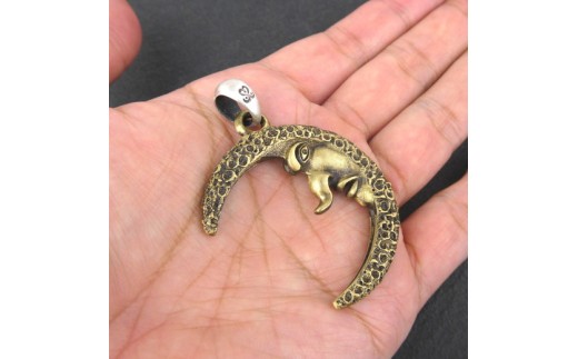 大きく弧を描く月の表面に、静かにこちらを見つめる人面が浮かび上がり、夢と現実の狭間で語りかけるような幻想的な美しさを湛える。精緻な彫刻が織りなす陰影は、夜空の輝きを思わせ、厳選された素材がその存在感を一層際立たせる。このペンダントは、ただの装飾を超え、身に着ける者の胸元で詩的な物語を紡ぎ、視線を奪うメルヘンの象徴となる。