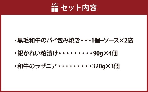 - いわて牛のパイ包み焼き トリュフソース (パイ包み焼き×1個、ソース×2袋) / 銀かれい 粕漬け (4個入) / いわて短角牛のラザニア (3個セット) パイ包み焼き 粕漬け焼き ラザニア セット 詰合せ 冷凍