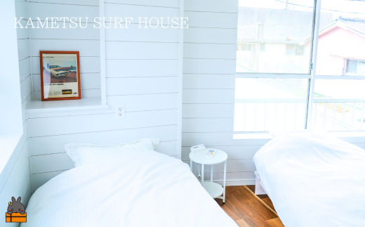 鹿児島県徳之島の中心街「亀津」に構える、一棟貸しの宿「KAMETSU SURF HOUSE」は、海好きのための、海を感じる宿泊施設で白を基調としたサーファーズハウスです。