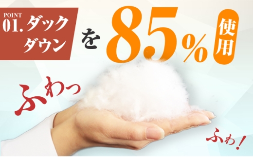 吸湿性・放湿性に優れた羽毛の特性を活かし、蒸れにくく、軽量でありながらも暖かくお使いいただけるのが特徴です。