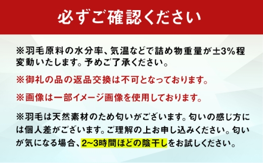 ※羽毛は天然素材のため、特有の臭いを感じる場合がございます。